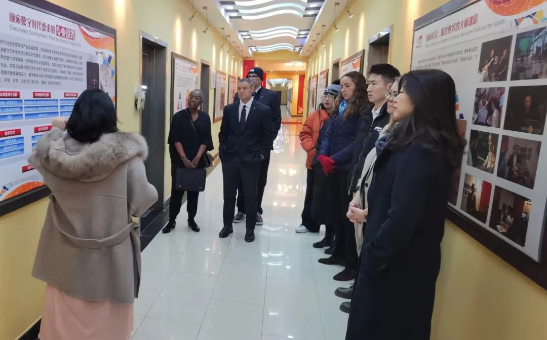 密歇根州立大学代表团还于11月29日访问我校海南国际学院,在海南国际学院直属党支部书记、常务副院长张辉陪同下,参观了中国传媒大学专享楼,详细考察当前学院的办学基础条件和配套设施,了解建筑办公环境、教学设备、教室功能等信息。代表团对海南国际学院的基础设施建设给予了高度赞赏,并就双方合作办学项目的执行、推进展开深入讨论。